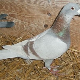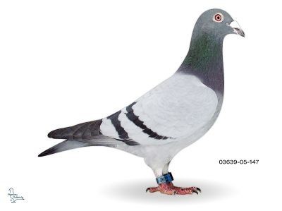 Sein Vater stammt vom Schlage U. Peek aus 2 origial Leysentauben, seine Mutter ist eine Tochter meines 1100 x der Täubin NL02-1899592 vom Schlage H. van Venrooij, die auch Mutter meines 147 ist.